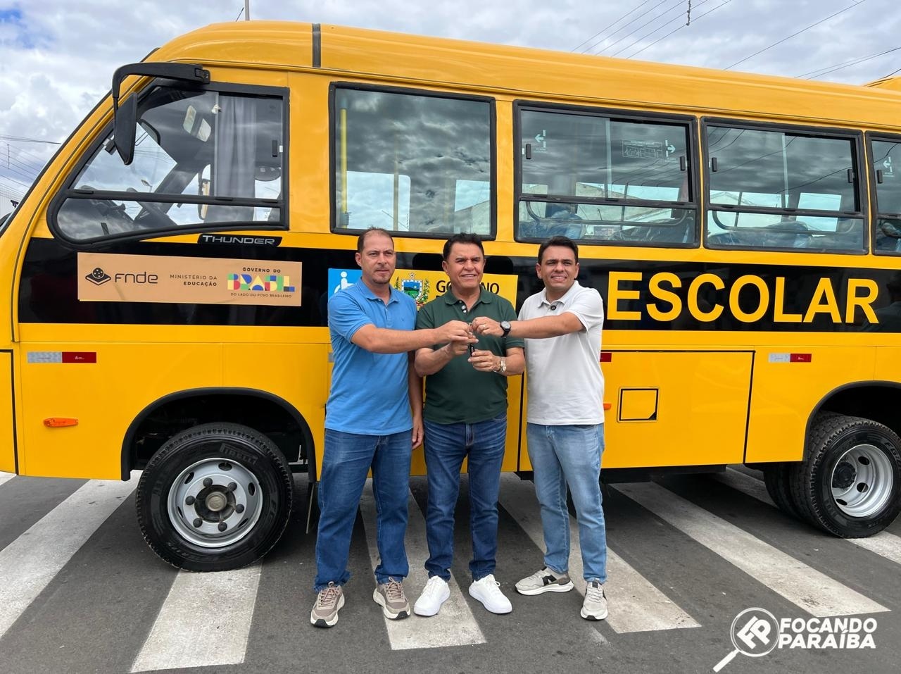 Prefeito Tárcio Gabriel, vice Cícero Maciel e Deputado Federal Wilson Santiago entregam ônibus escolar e van para a população de Amparo