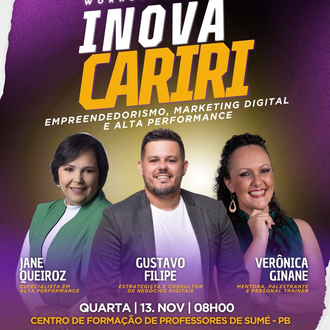 A Associação dos Municípios do Cariri e Agreste paraibano – AMCAP realizará nesta quarta-feira (13), o Workshop Inova Cariri, evento exclusivo focado em Empreendedorismo, Marketing Digital e Alta Performance para você que busca crescer e se destacar no mercado.