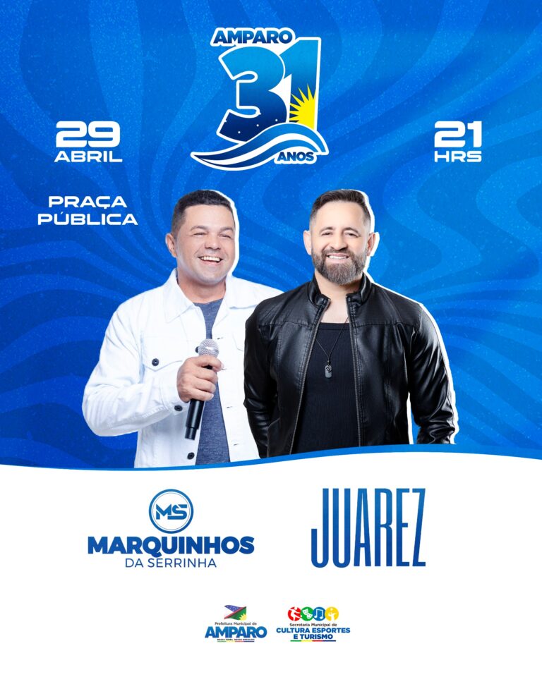O evento, que promete atrair um grande público, será realizado no dia 29 de abril, a partir das 21h, na Praça Pública de Amparo. A celebração contará com a presença de duas grandes atrações musicais: os cantores Juarez e Marquinhos da Serrinha, que prometem agitar a noite com muito forró e música ao vivo.