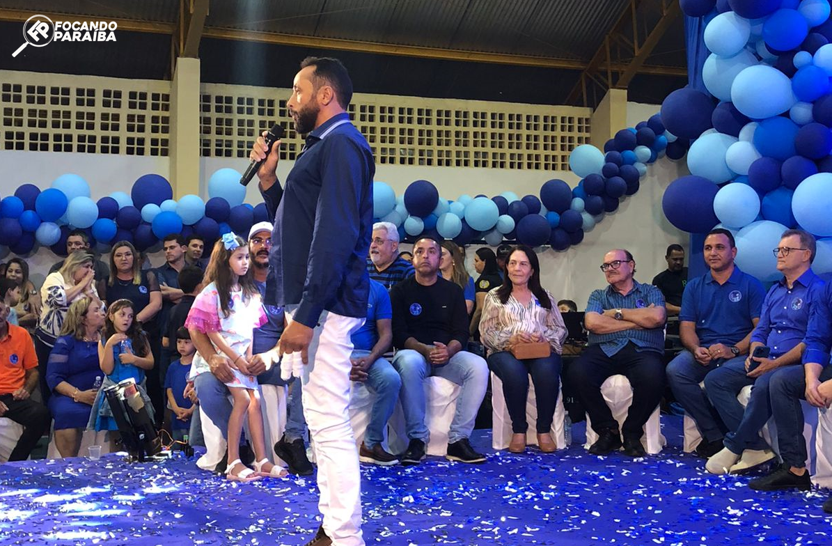 O lançamento aconteceu durante convenção composta por PL, PSB e MDB, realiza neste sábado (20/07), no Ginásio de Esportes.