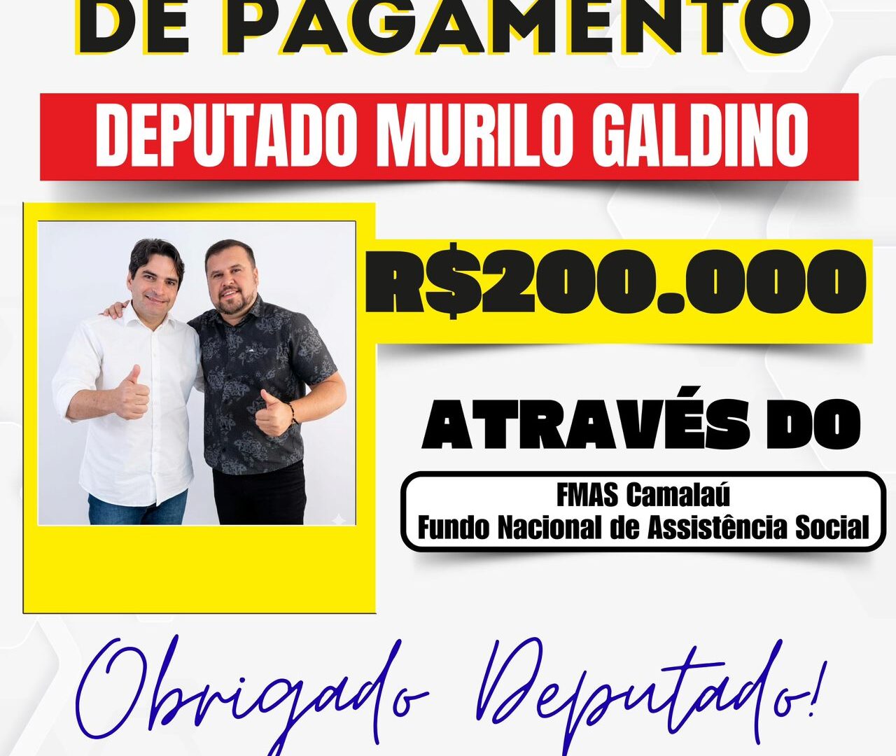 A Prefeitura de Camalaú anunciou o recebimento de R$ 200 mil em recursos provenientes de emenda parlamentar individual, destinados ao fortalecimento das ações de assistência social no município.