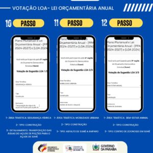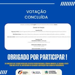 A população pode votar também de forma online através do endereço: https://votacaoode.pb.gov.br/orcamento. Os sumeenses que tiverem dificuldade em votar podem procurar a Câmara Municipal de segunda a sexta-feira das 07h às 12h, um servidor foi colocado à disposição para ajudar no procedimento.