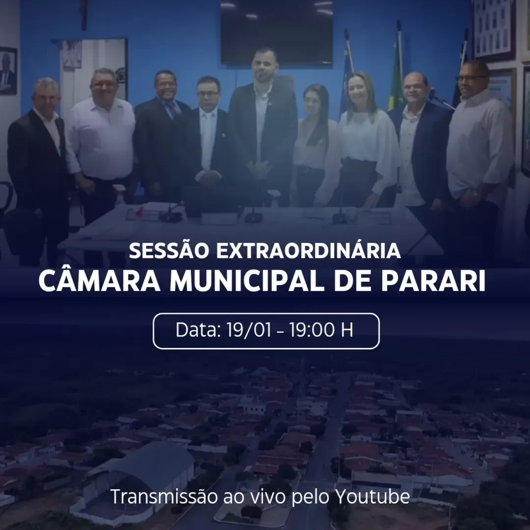 A Câmara Municipal de Parari realiza, na próxima segunda-feira (19), às 19h, a primeira Sessão Extraordinária do Poder Legislativo em 2026. O encontro marca o início das atividades legislativas do ano e contará com a apreciação de projetos considerados de suma importância para o município.