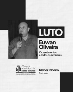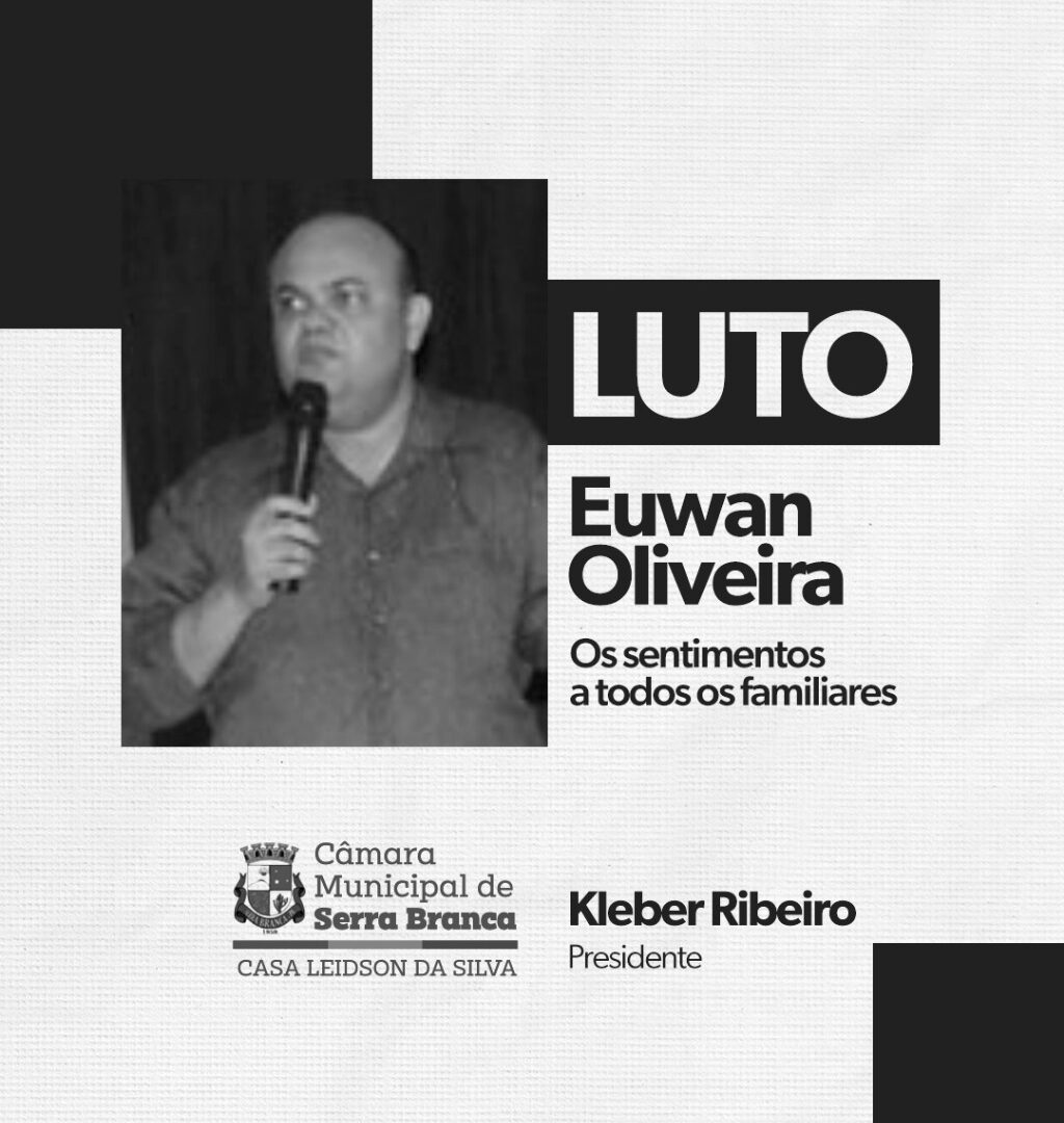 O Presidente da Câmara Municipal de Serra Branca, Kleber Ribeiro, decretou luto oficial pelo falecimento do ex-vereador dr. Euwan Carlos Batista de Oliveira, de 52 anos, nesta quarta-feira, 1° de novembro.