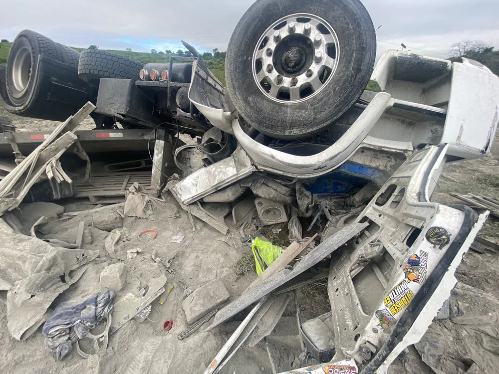 Um caminhão capotou na manhã desta quinta-feira (6) na BR-230 nas proximidades do Distrito de Galante, em Campina Grande, após o motorista perder o controle do veículo numa curva. Informações repassadas por amigos do motorista disseram que ele saiu do município de Caaporã com uma carregamento de sacos de cimento e tinha Picuí como destino final.
