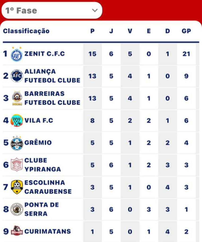 Nos demais confrontos da rodada, Curimatans e Ponta de Serra empataram em 1 a 1, em um jogo equilibrado. Já o Zenit, atual líder da competição, confirmou sua boa fase e venceu o Grêmio por 2 a 0, mantendo-se firme na ponta da tabela.