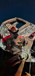 Duas viaturas operacionais foram deslocadas até o local, sendo estes um caminhão de combate a incêndio e uma viatura de busca e salvamento, para que pudessem dar o apoio necessário aos envolvidos no acidente. Ao chegar no local foi constatado que um dos carros (Corsa Hatch) estava totalmente consumido pelas chamas e que não existia mais nenhuma vítima nos veículos.