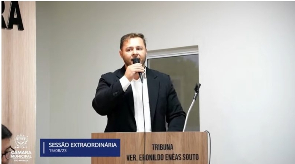 Durante sua fala, o novo gesto se mostrou triste com a prisão do prefeito e cobrou respeito a Umberto Jefferson.