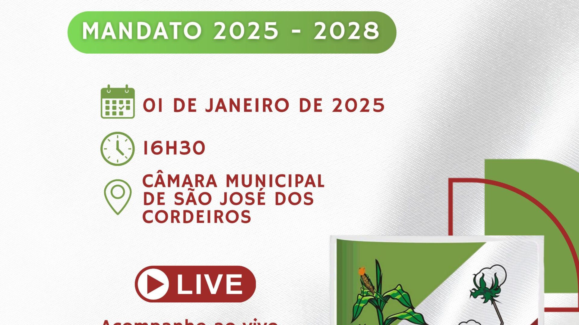 Acontece nesta quarta-feira, dia 1º de janeiro, às 16h30, na Casa Genival Aires de Queiroz, a posse dos eleitos para o mandato de 2025 a 2028, em São José dos Cordeiros.