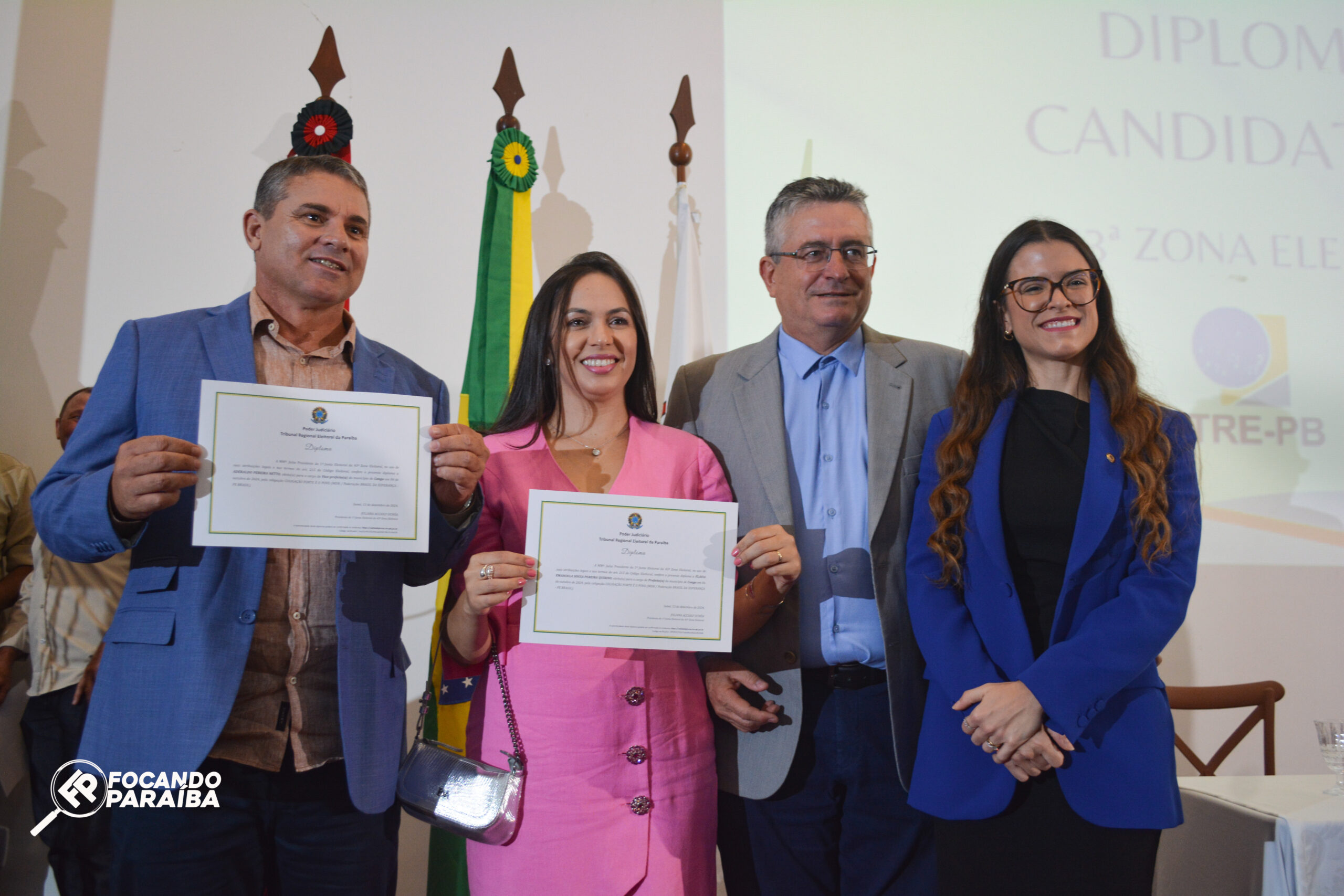 Foram diplomados na manhã desta sexta-feira (13/12), a prefeita reeleita Flavinha (MDB) e vice-prefeito Dera (PT) e estarão a frente da prefeitura do Congo no período de 2025 a 2028.