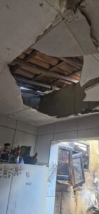 O telhado que ficava a cima do fogão chegou a cair, pois toda madeira foi consumida pelas chamas e uma parte do gesso de outro cômodo foi danificado.