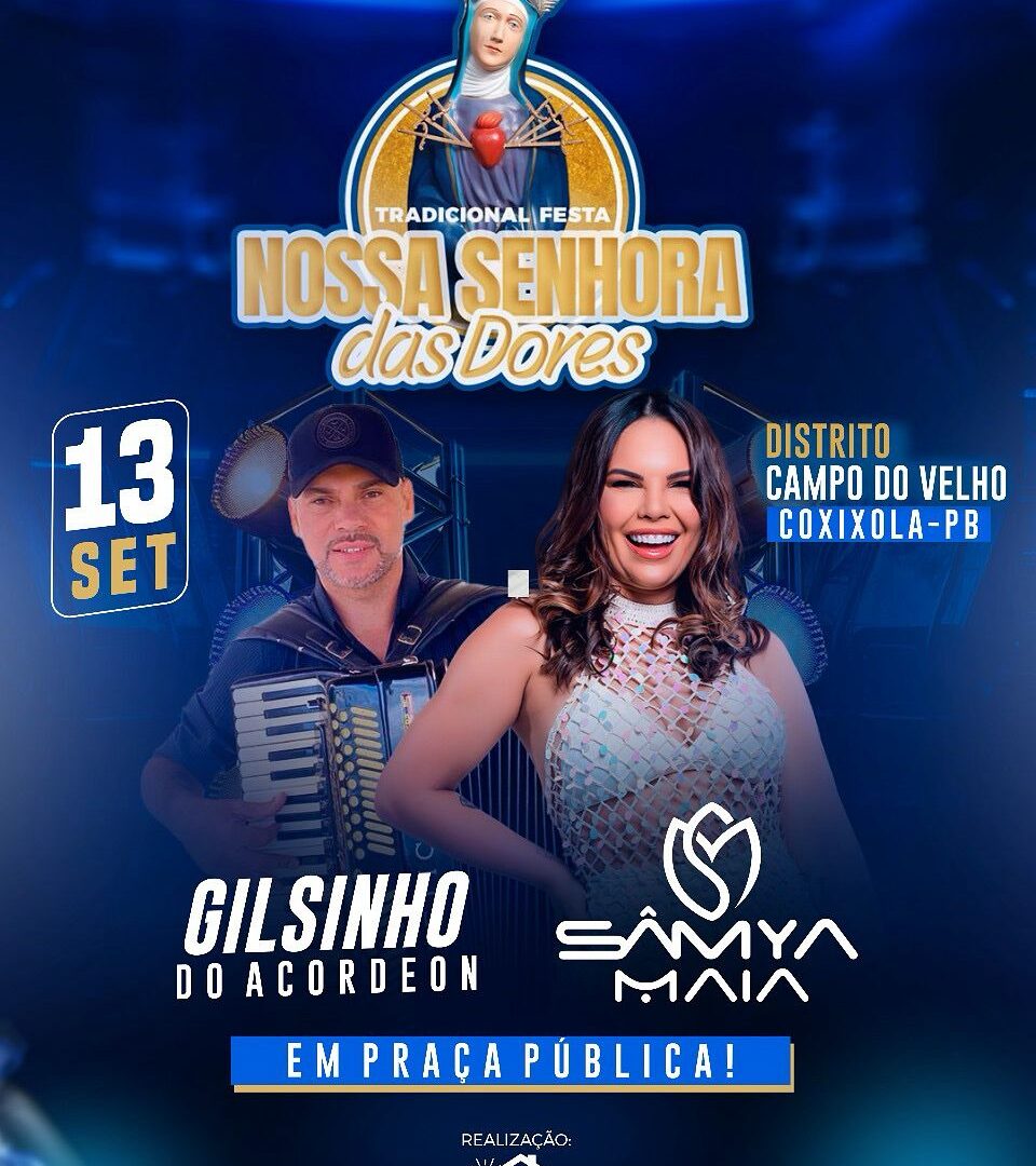 A grande atração da noite será a apresentação da cantora Sâmya Maia, uma das vozes mais conhecidas do forró nordestino, que promete emocionar o público com um repertório repleto de sucessos. O evento também contará com o talento do artista local Gilsinho do Acordeon, orgulho da terra, que levará ao palco o melhor da música regional.