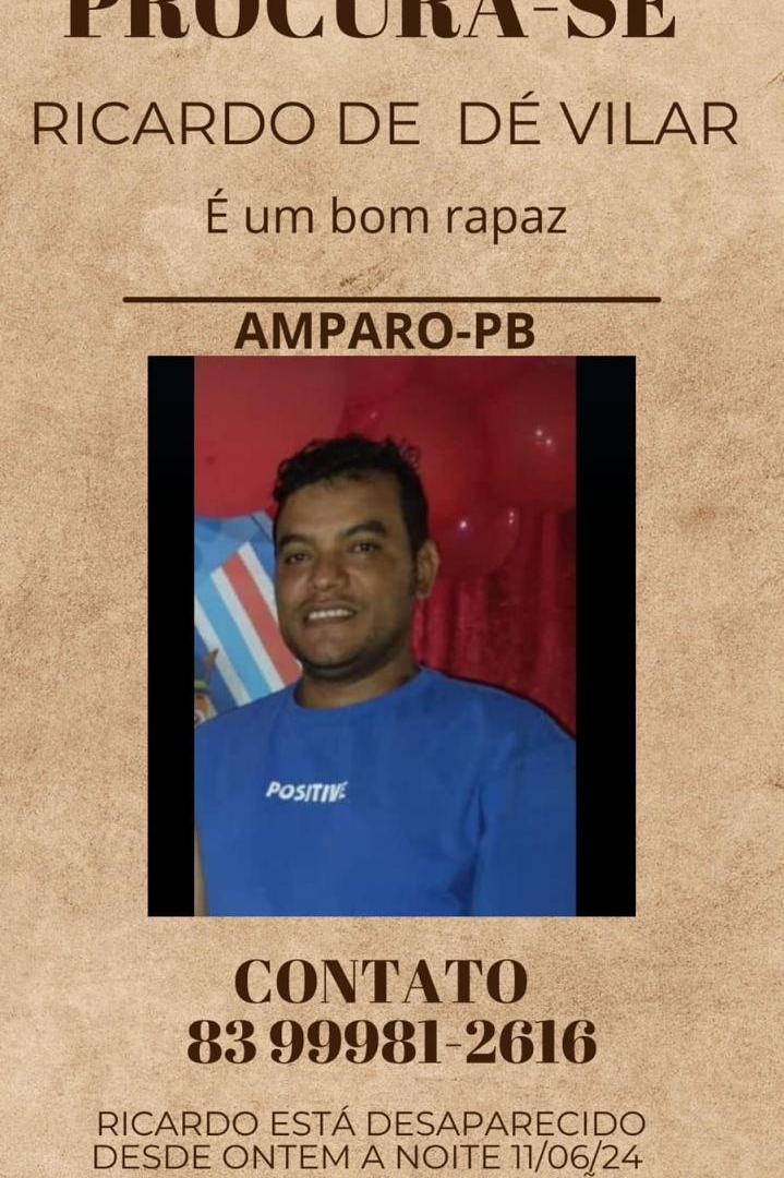 Em um post divulgado nas redes sociais, além de pedir ajuda, parentes informam que Ricardo é uma pessoa. E qualquer informação sobre ele deve entrar em contato pelo (83) 9 9981-2616.