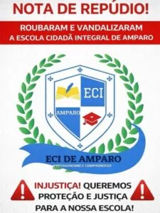 A Escola Cidadã Integral (ECI) de Amparo foi alvo de roubo e atos de vandalismo na noite entre a quarta-feira (11) e a quinta-feira (12), no município de Amparo, no Cariri paraibano. O caso gerou revolta na comunidade escolar e motivou a divulgação de uma nota pública de repúdio por parte da direção da unidade.