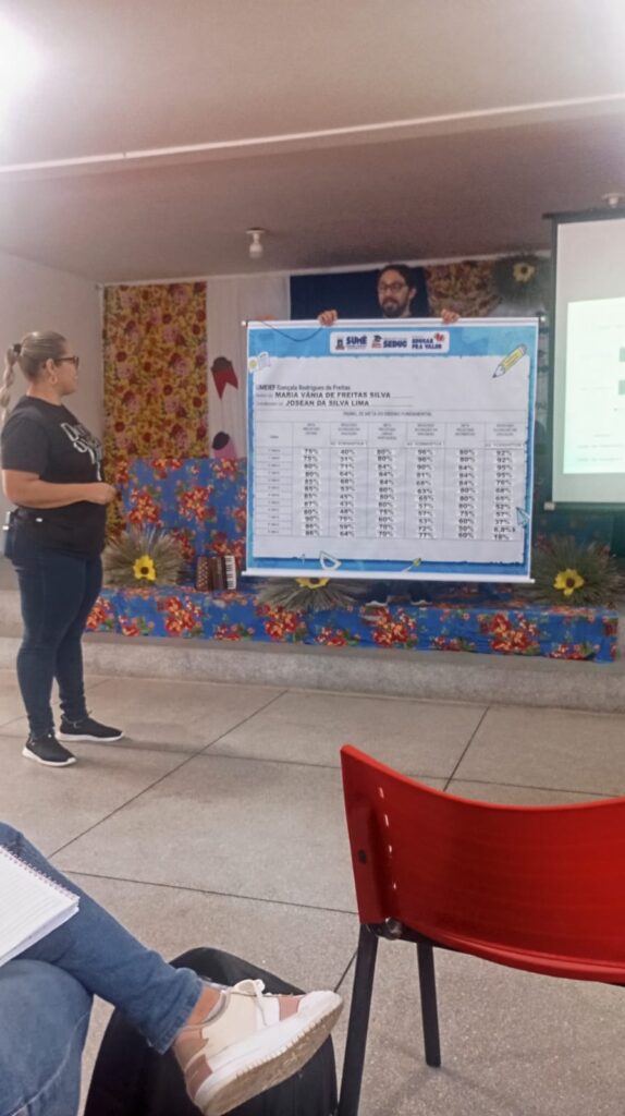 Denise também informou que sua equipe irá fazer uma nova leitura dos resultados do primeiro bimestre para identificar quais são as habilidades que ainda não foram consolidadas e levá-las para o planejamento semanal com a realização de atividades de aprendizagem no dia a dia da escola. A Educação presentou com um brinde, as escolas que foram destaque na Avaliação Formativa como forma de valorização dos profissionais.