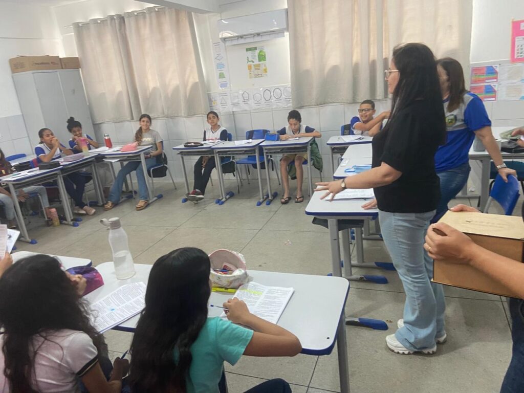 Na terça-feira (28), a secretária da Educação, Denise Sousa, e a professora Jucy Araújo, coordenadora dos anos finais, visitaram as escolas levando uma mensagem de apoio e incentivo aos alunos. A secretária entregou um mimo simbólico e desejou tranquilidade e confiança durante a avaliação.