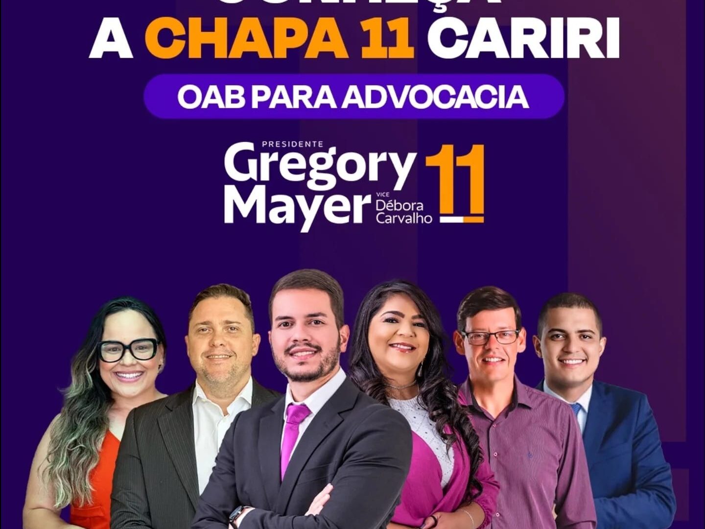 No dia 19 (terça-feira) de novembro próximo terá a Eleição para a Direção da OAB seccional da Paraíba e das Diretorias das subseções, no Cariri temos a Subseção do Cariri, com sede em Monteiro, abrangendo toda a região. E algo que vem surpreendendo a classe da advocacia caririzeira é a ascensão e aceitação da Chapa de oposição, liderada pelos advogados Gregory Mayer e Débora Carvalho, como fato novo, posto que desde a criação da Subseção só havia uma única chapa concorrente.