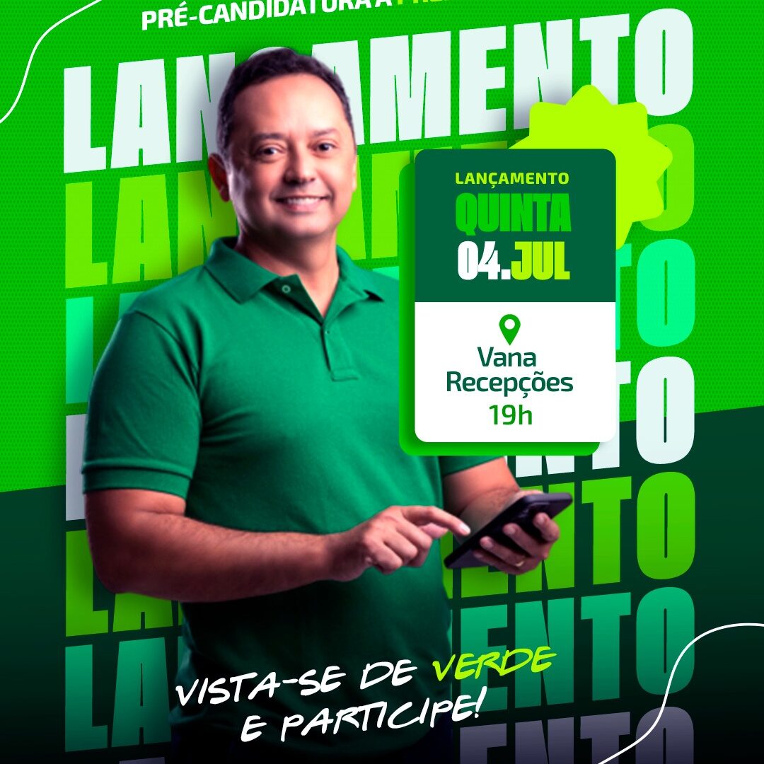 O lançamento oficial do pré-candidato do PL ocorrerá nesta quinta-feira(04), às 19h, na Vana Recepções.