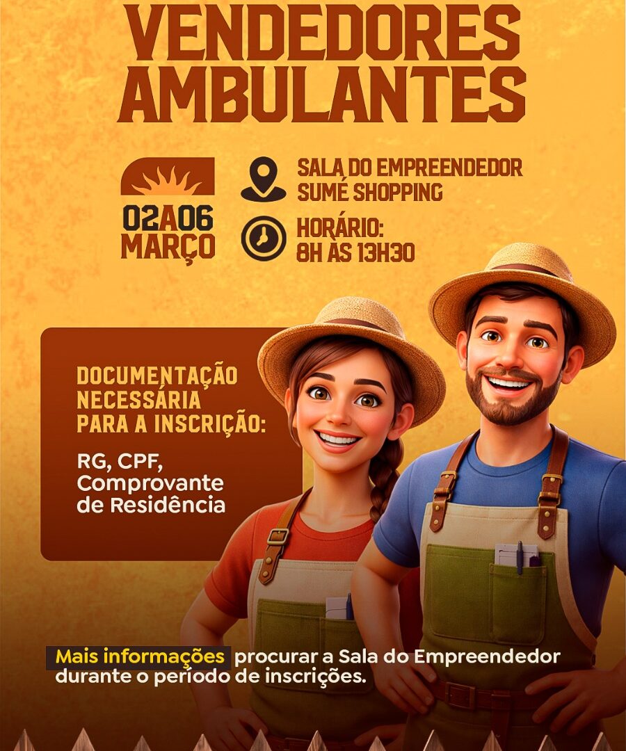 Estão abertas as inscrições para cadastro dos vendedores ambulantes que desejam comercializar alimentos na III Edição da Expo Sumé, um dos eventos mais aguardados do calendário municipal, que promete movimentar a economia e fortalecer o empreendedorismo local.