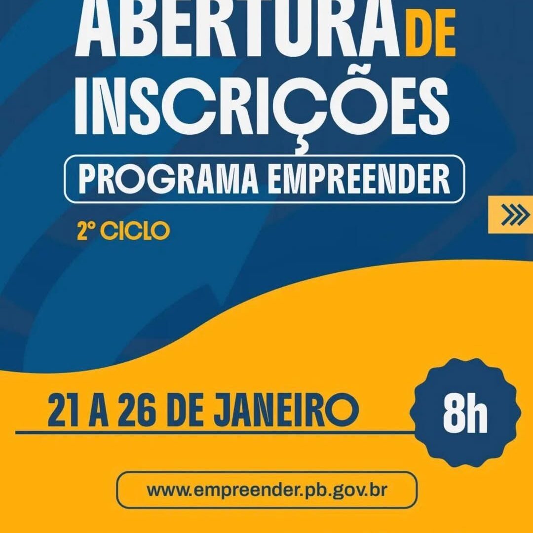 Estão abertas as inscrições para o programa EmpreenderPB, iniciativa do Governo do Estado da Paraíba voltada ao fortalecimento do empreendedorismo e ao incentivo à geração de renda. Os interessados têm até o dia 26 deste mês para realizar a inscrição.
