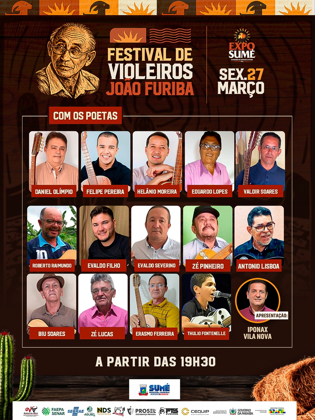 - 19h30 – FESTIVAL DE REPENTISTAS “JOÃO FURIBA”