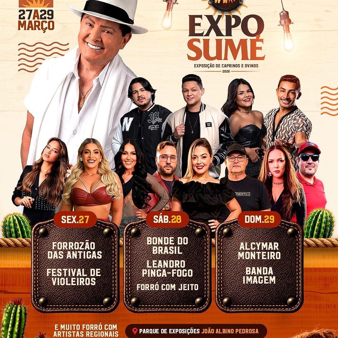 A Expo Sumé 2026 conta com o patrocínio de: Sebrae, Senar, Apacco, Sedap/Governo do Estado, Ministério do Turismo, Unicir, Cequip, Agubel, Cariri Web, FTS Eventos, NDS Transportes, Prosel Segurança Privada, Fit Informática, Sumé Bordados.