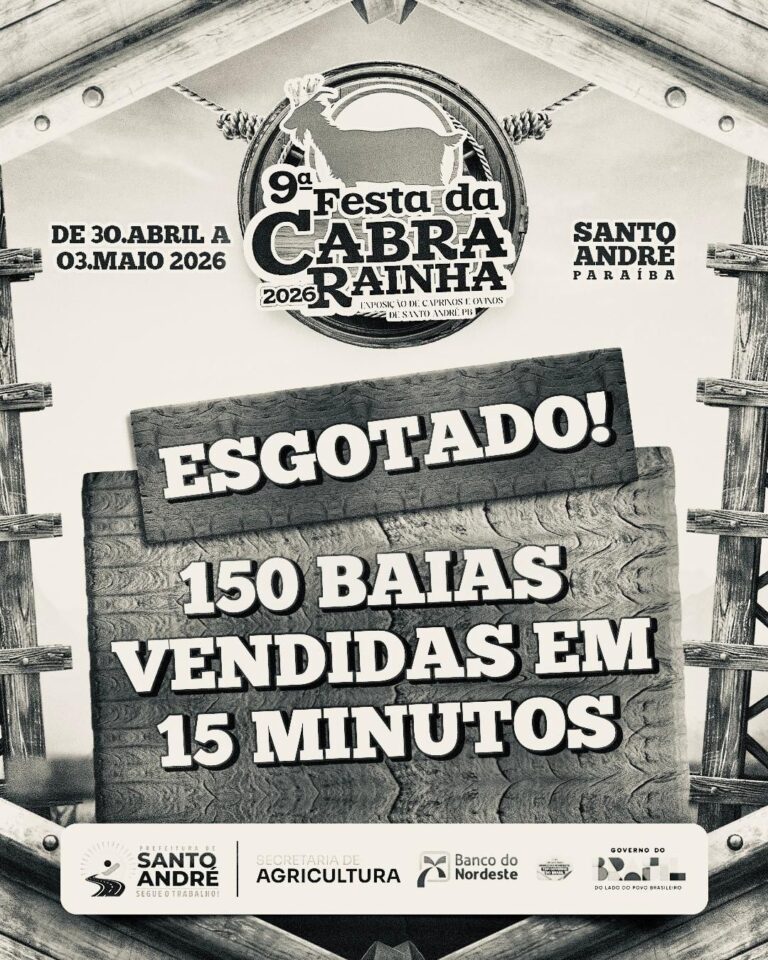 A edição 2026 da tradicional Festa da Cabra Rainha, realizada em Santo André, já pode ser considerada um verdadeiro sucesso antes mesmo de sua abertura oficial. A programação técnica do evento, que acontece entre os dias 30 de abril e 3 de maio, registrou um feito impressionante: todas as 150 baias disponibilizadas para exposição de caprinos e ovinos foram vendidas em apenas 15 minutos.