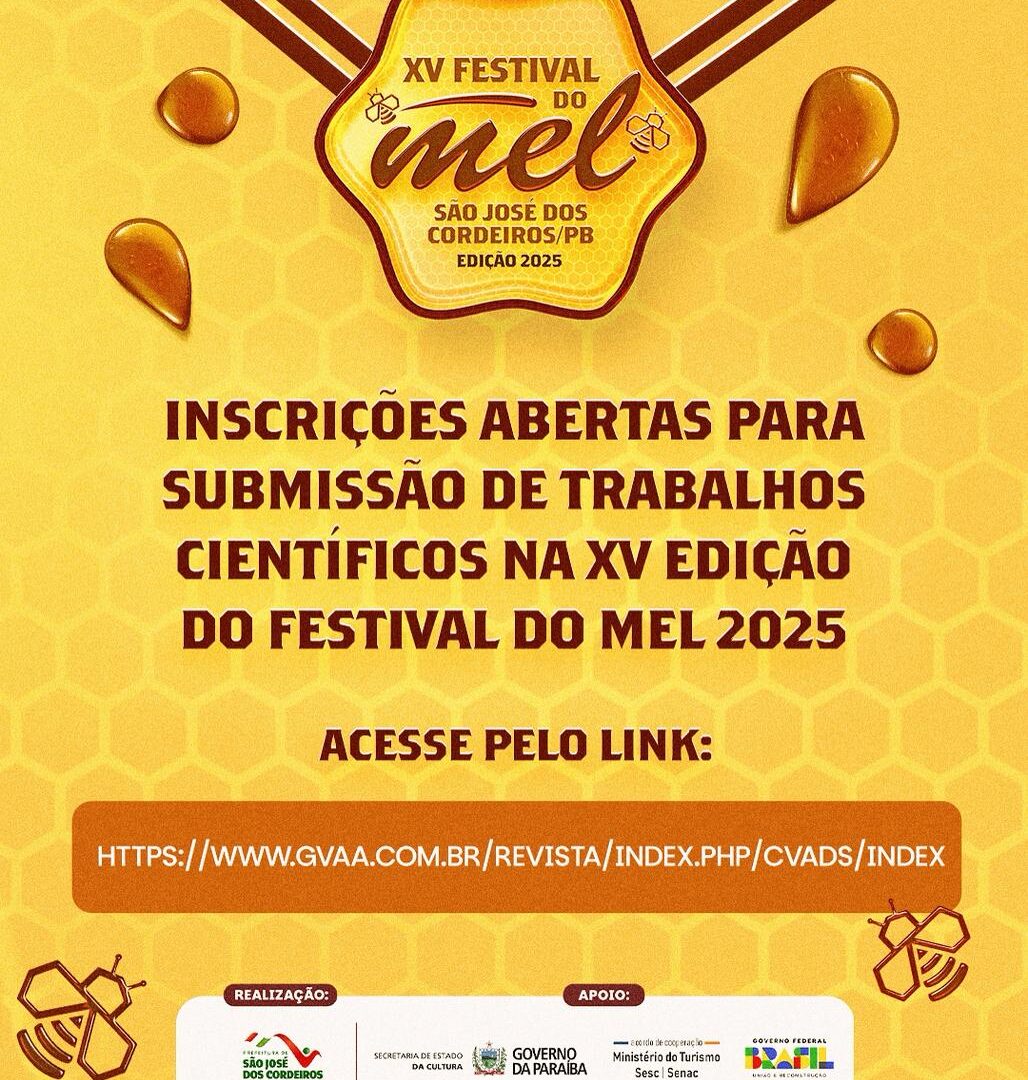 A Prefeitura Municipal de São José dos Cordeiros anuncia que estão abertas as inscrições para apresentação de trabalhos científicos, artigos e projetos voltados à apicultura e meliponicultura durante a 15ª edição do Festival do Mel.