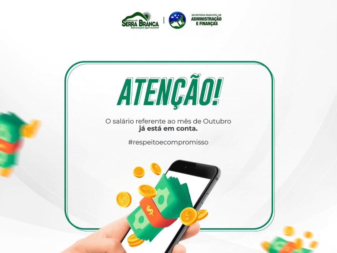 A folha dos servidores do município de Serra Branca referente ao mês de outubro, foi paga de forma antecipada nesta sexta-feira (18).