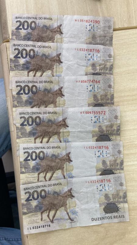 Seis cédulas falsas foram apreendidas no momento da prisão, mas outras cédulas já podem ter sido inseridas no comércio local. O preso foi ouvido e atuado em flagrante pelo crime previsto no art. 289, § 1º, do Código Penal, cujas penas podem chegar a 12 anos e multa, e continua recolhido na DPF/CGE aguardando audiência de custódia.