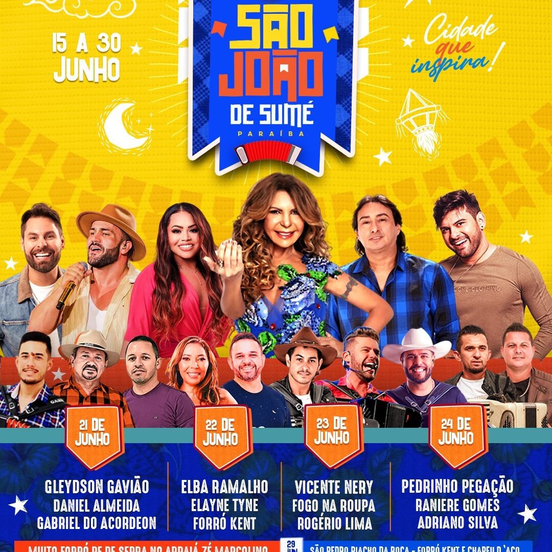 - Sábado, dia 22: Forro Kent, Elba Ramalho e Elayne Tyne