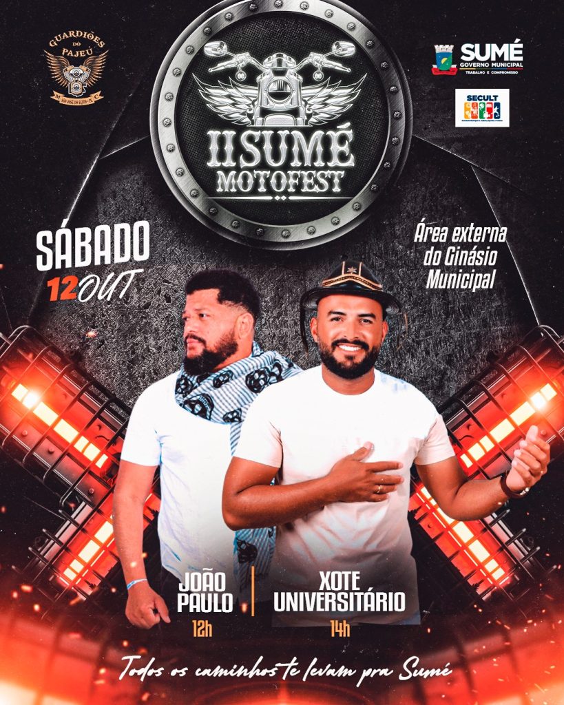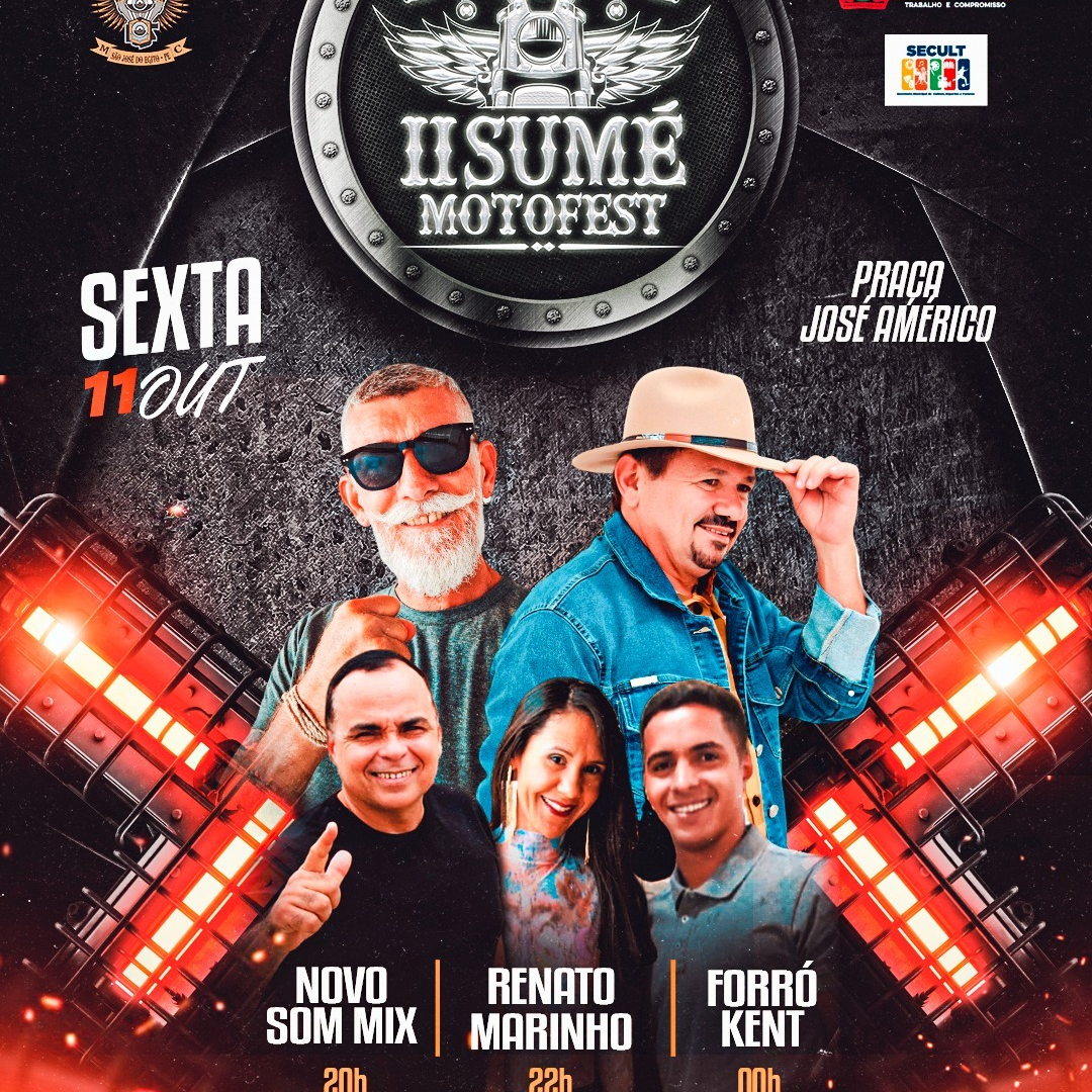 A cidade de Sumé no cariri paraibano sedia, sexta-feira dia 11 e sábado dia 12 de outubro, a 2ª edição do SuméMotoFest. O evento será realizado na Praça José Américo e no Ginásio de Esportes Municipal e vai reunir Moto Clubes da Paraíba e Pernambuco.