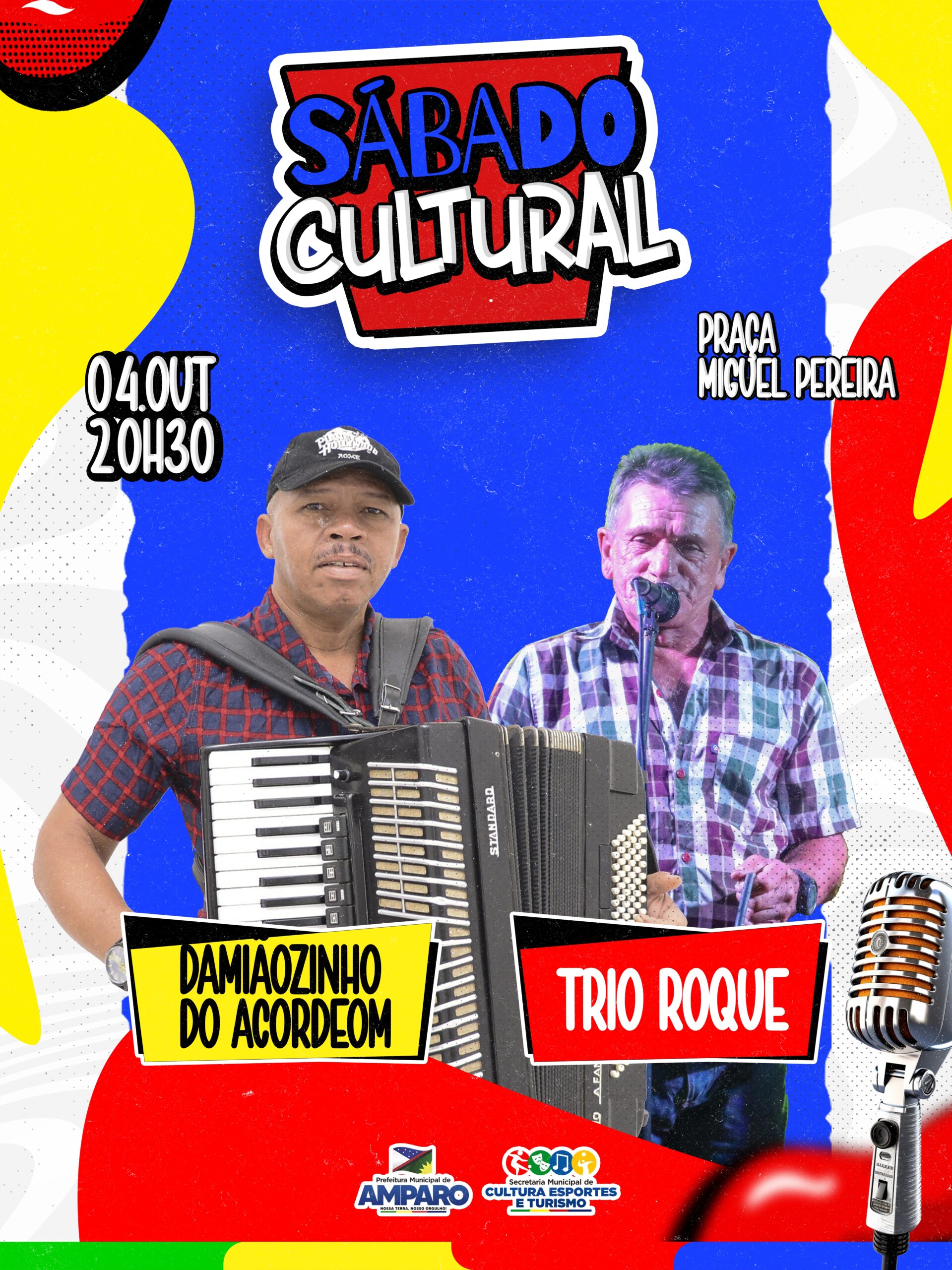 No próximo sábado, 4 de outubro, a cidade de Amparo será palco de mais uma edição do Sábado Cultural, evento que valoriza e celebra as tradições nordestinas. A programação terá início às 20h30, na Praça Miguel Pereira, com apresentação de Damiaozinho do Acordeom e o Trio Roque.