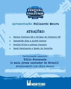 “O Festival Pinto do Monteiro tem se destacado em Monteiro como um evento que valoriza a cultura popular e, ao mesmo tempo, presta homenagem a uma figura icônica de nossa cidade. É uma celebração da poesia improvisada que traz vida às tradições do Cariri. Estamos ansiosos para receber a comunidade e visitantes neste evento especial,” disse.