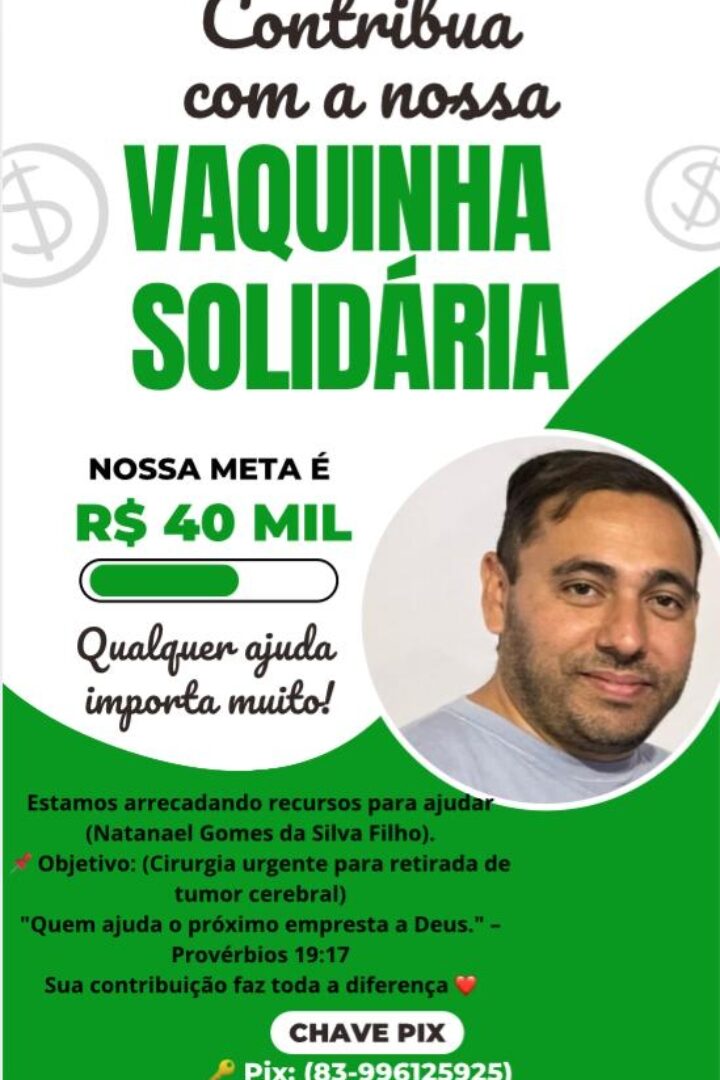 A meta da campanha é arrecadar R$ 40 mil. As doações podem ser feitas pela chave Pix (83) 99612-5925, em nome de Nathanael Gomes da Silva Filho.