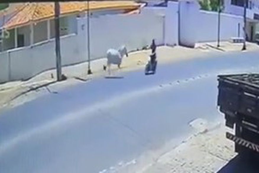 Um vídeo, mostra o momento do episódio onde o motociclista seguia pela rua quando foi surpreendido e derrubado pelo cavalo.