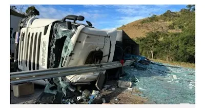 Uma carreta conduzida por um motorista Monteirense, que estava carregada com vidros, tombou na manhã desta segunda-feira (03), na altura do KM 781 da rodovia BR-116, em Leopoldina.