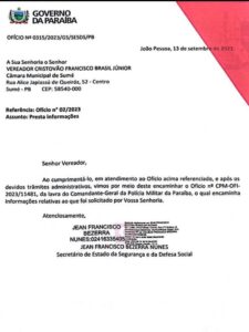 O Vereador de Sumé, região do cariri paraibano, Cristóvão Jr. ao ser procurado por populares afirmando que 190 não está sequer atendendo, o parlamentar protocolou um ofício à Secretaria de Segurança e Defesa Social.