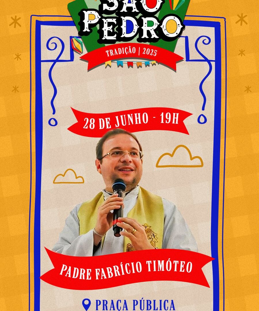 A programação do São Pedro 2025 de São José dos Cordeiros promete emocionar o público com um momento de fé e espiritualidade. No dia 28 de junho, a partir das 19h, a Praça Pública será palco da apresentação do querido Padre Fabrício Timóteo, um dos nomes mais respeitados da música católica na região.