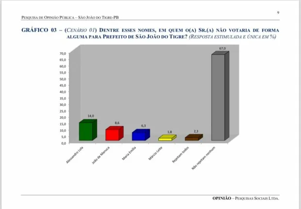 O Instituto Opinião realizou a pesquisa no dia 23 de novembro, e ouviu 220 pessoas na zona urbana e rural de São João do Tigre. O intervalo de confiança estimado é de 90,0% e a margem de erro máxima estimada é de 5,5 pontos percentuais para mais ou para menos sobre os resultados encontrados no total da amostra.