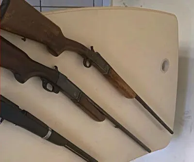Durante a ação, os policiais apreenderam três espingardas. O suspeito não foi encontrado nas diligências posteriores.