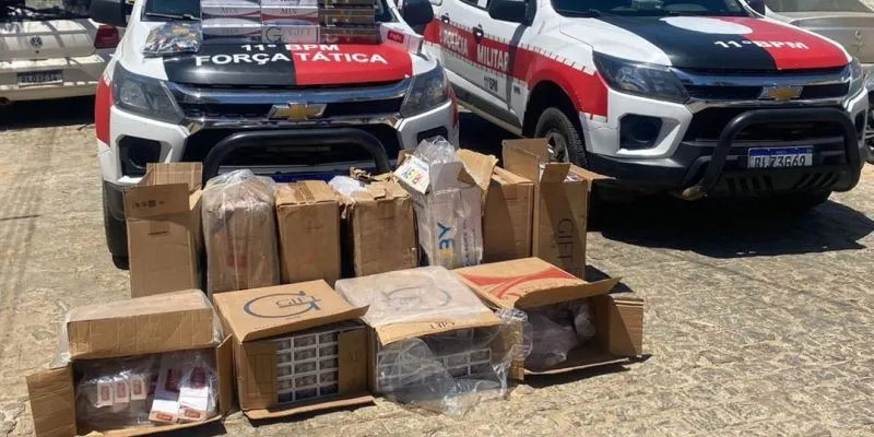 Entretanto, durante a vistoria veicular, as equipes encontraram diversas caixas de cigarro no banco traseiro e no porta-malas, totalizando 425 maços e 8,5 caixas. Ao ser questionado sobre a procedência da mercadoria, o imputado admitiu que os cigarros eram oriundos do Paraguai e não possuíam nota fiscal, configurando um caso de contrabando.