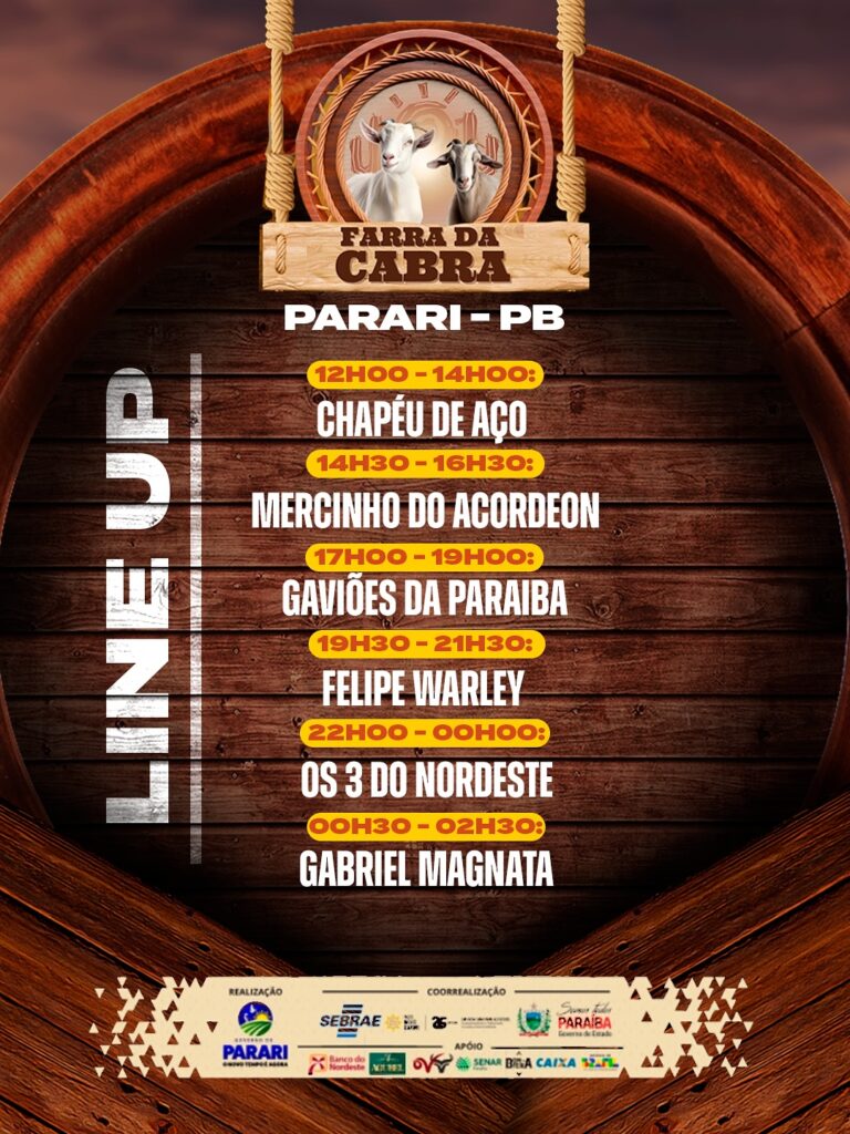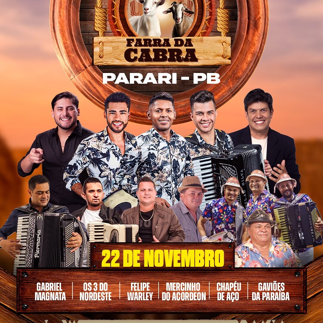 Com mais de 12 horas ininterruptas de apresentações musicais, a Farra da Cabra será um momento de celebração da força do campo, do trabalho do povo e do orgulho de ser parariense. O evento contará com uma programação diversificada e reunirá artistas regionais e de renome no forró nordestino.