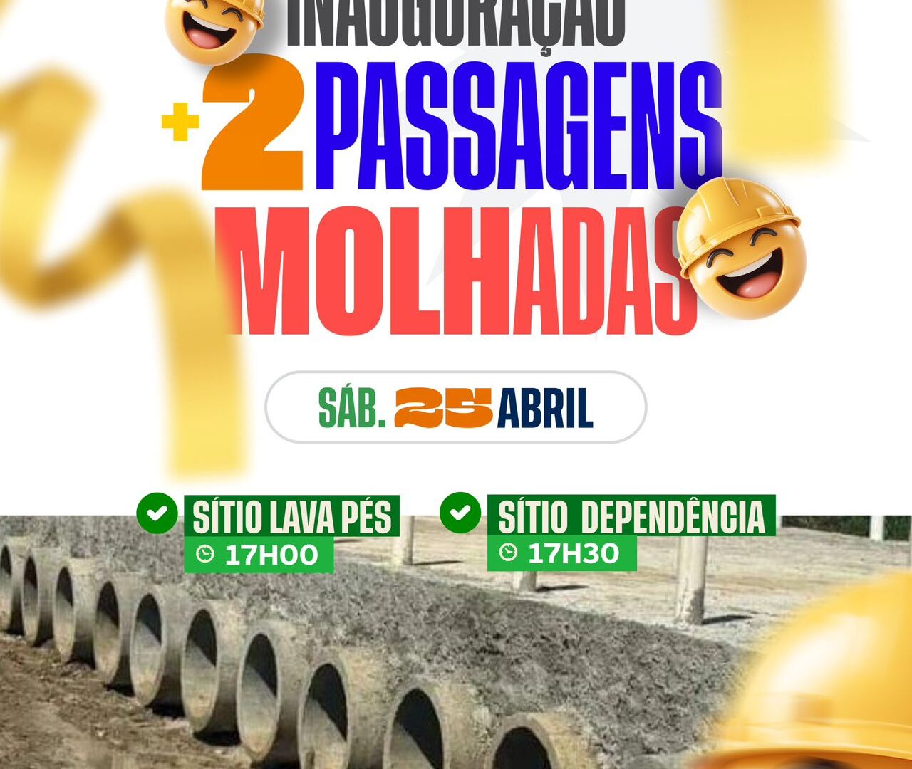 A Prefeitura de Ouro Velho realiza, neste sábado, dia 25 de abril, a inauguração de novas passagens molhadas em comunidades da zona rural do município. A ação, liderada pelo prefeito Dr. Júnior, representa mais um avanço na melhoria da infraestrutura e da mobilidade para a população.