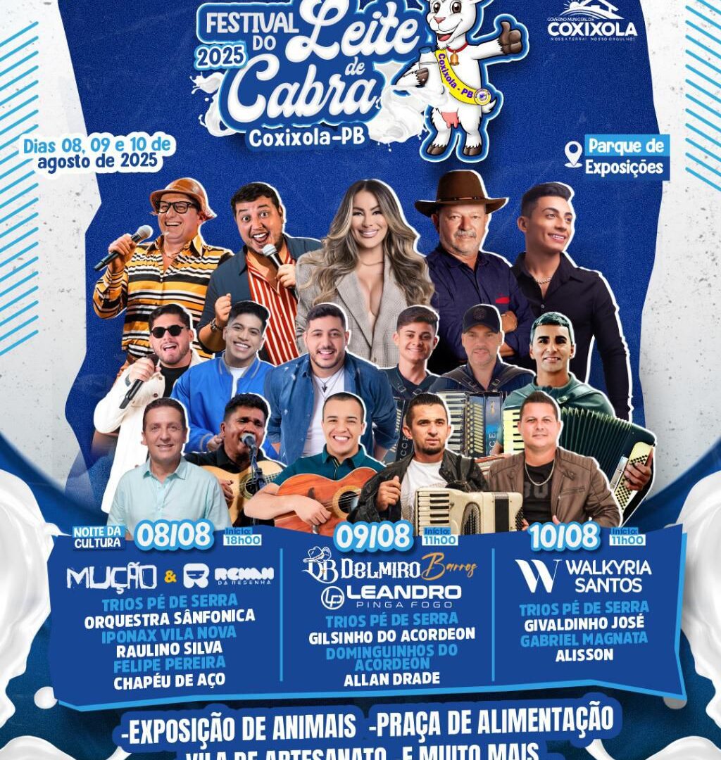 A Prefeitura de Coxixola, sob a gestão do prefeito Nelsinho Honorato, anunciou oficialmente o line-up do Festival do Leite de Cabra 2025, que será realizado entre neste final de semana, no Parque de Exposições do município. O evento, que já é tradição na região, contará com entrada gratuita e promete atrair um grande público com uma programação diversificada e atrações musicais de peso.