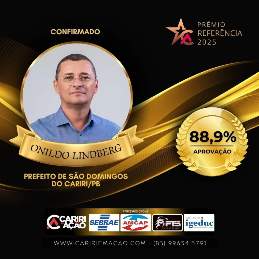 Com quase 90% de aprovação, Onildo Lindberg consolida-se como um dos gestores mais bem avaliados da região do Cariri paraibano, demonstrando o reconhecimento popular ao trabalho sério e comprometido que vem sendo desenvolvido em São Domingos do Cariri.