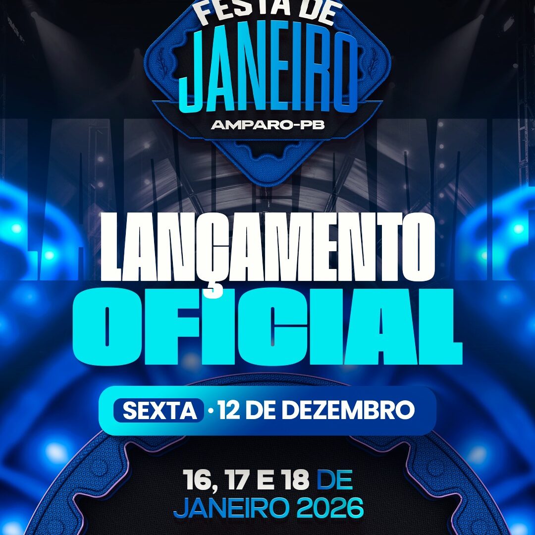 A Prefeitura Municipal de Amparo, por meio da Secretaria Municipal de Cultura, Esportes, Lazer e Turismo, informa que o lançamento oficial da tradicional Festa de Janeiro 2026 acontecerá nesta sexta-feira, 12 de dezembro, durante o programa institucional da Prefeitura, transmitido pela Rádio Cidade de Sumé, a partir das 12h.
