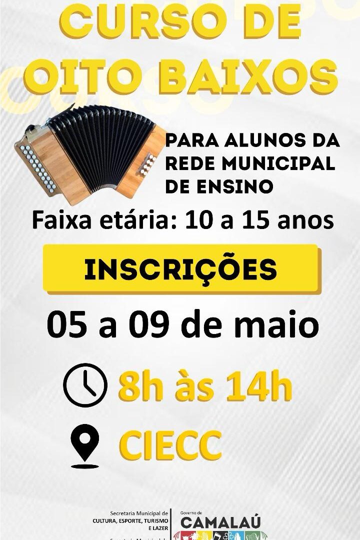 A Prefeitura Municipal de Camalaú, por meio das Secretarias de Cultura e Educação, promoverá um curso de sanfona de oito baixos voltado aos alunos da rede municipal de ensino. A iniciativa busca valorizar a cultura local e fortalecer a tradição musical da região do cariri paraibano.