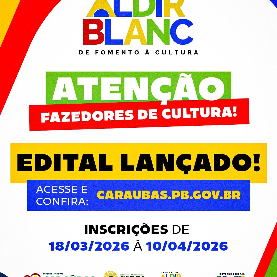 A Prefeitura Municipal de Caraúbas anunciou a abertura do edital da Política Nacional Aldir Blanc de Fomento à Cultura, iniciativa que visa fortalecer e incentivar a produção cultural no município. A ação representa uma importante oportunidade para artistas, grupos culturais e trabalhadores da cultura ampliarem suas atividades e projetos.