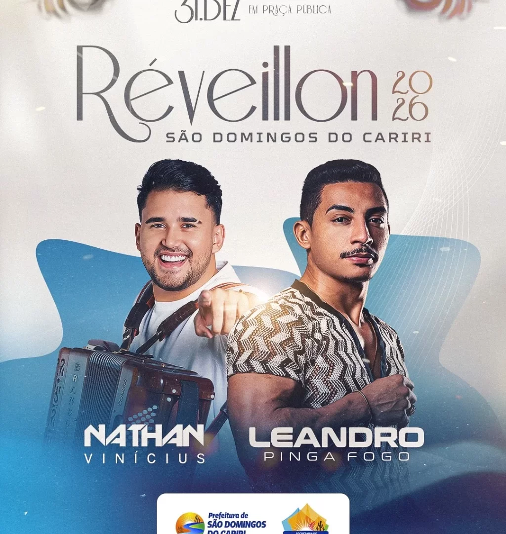 A Prefeitura de São Domingos do Cariri divulgou oficialmente as atrações do Réveillon 2026, que será realizado no dia 31 de dezembro, em praça pública, marcando a virada do ano com muita música e festa para toda a população.